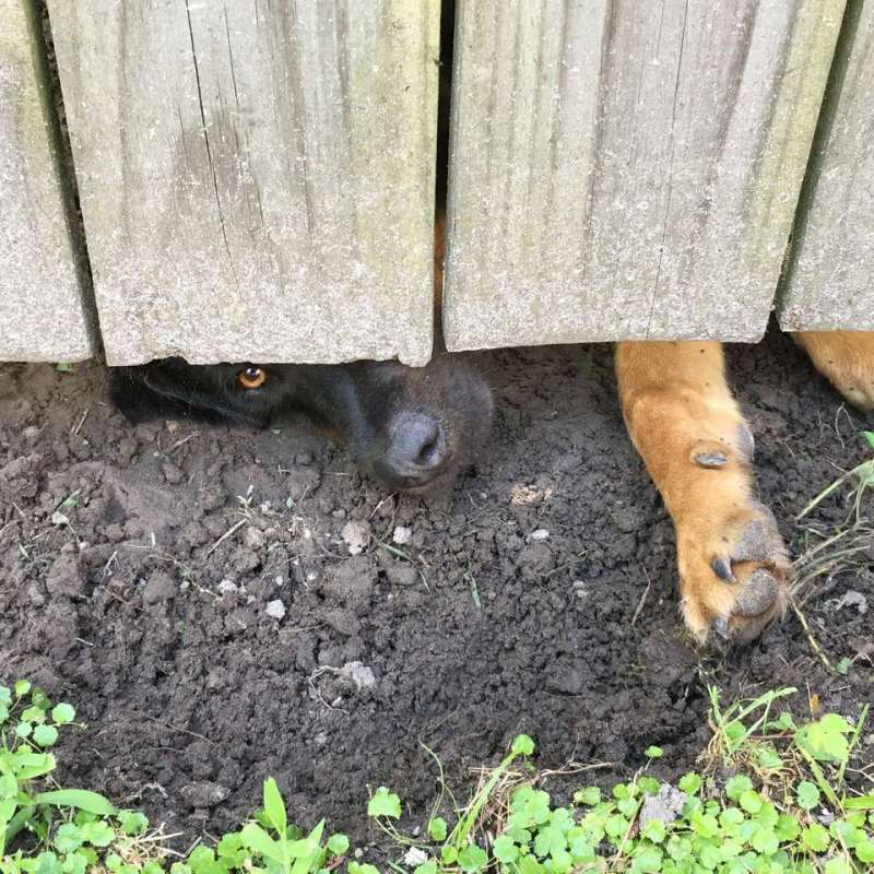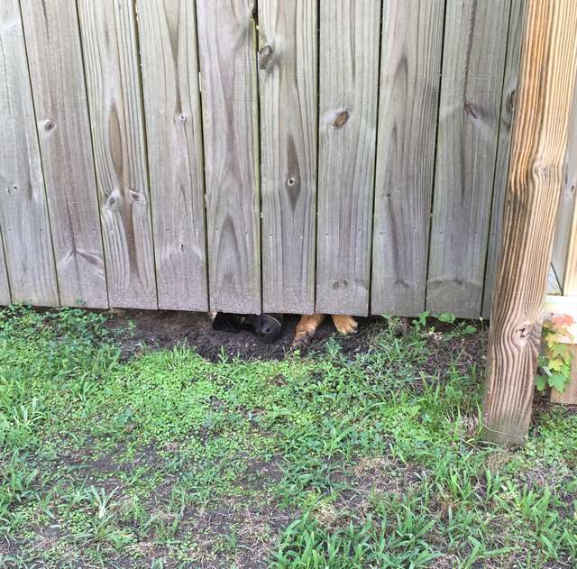 ▼那天Charlie像往常一樣出門,來到前院時感覺有人在偷看他。他左左右右找了一圈,才發現籬笆底下有一個不斷嗅聞的狗鼻子。下一刻,毛茸茸的狗頭就鑽了過來。那隻狗狗臉上掛著傻呼呼的笑,好奇看著一臉冷漠的Charlie。