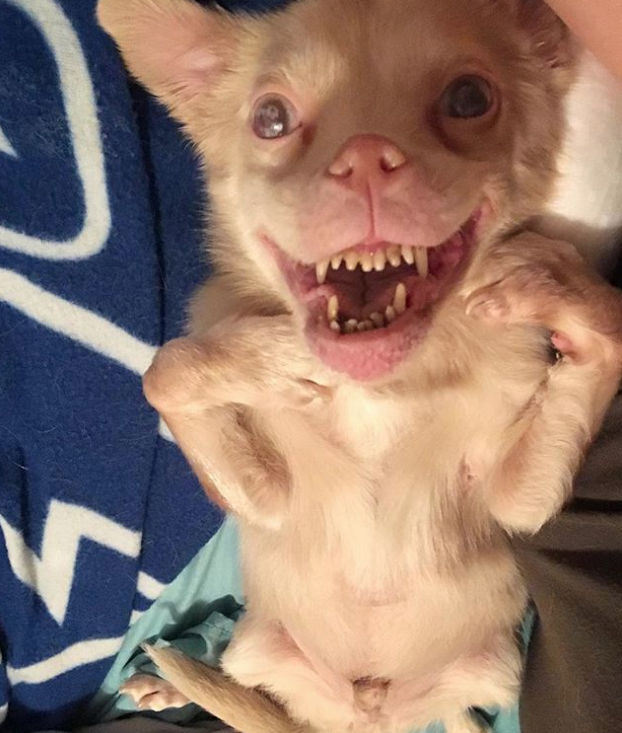 ▼疾病造成Tucker的臉長得跟普通的狗狗不一樣,但是主人卻完全不嫌棄牠畸形的相貌。反而用了更多的愛去鼓勵牠。