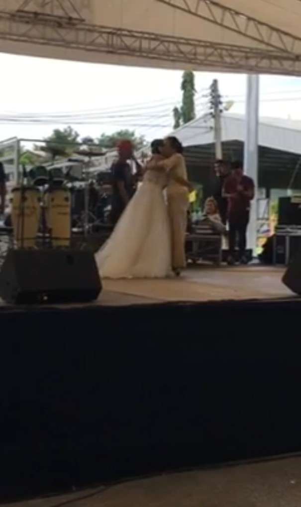 ▼新娘在台上傷心的表示「從沒想過這種事會發生」,之後她的母親上台給了她一個擁抱,同時也幫她為台下賓客們致歉,現場氣氛非常感人。據悉女方曾在上台之前,向長得與新郎很像的叔叔求助,要求他先假扮自己的新郎完成婚禮,沒想到叔叔竟然向她要求100萬泰銖的酬勞,讓她的計劃瞬間泡湯。