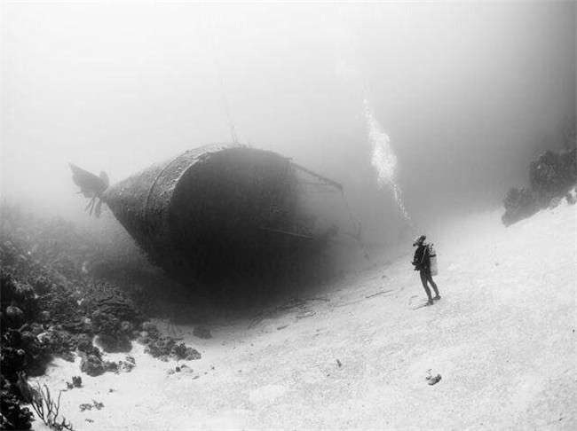 ▼10. 水下殘骸像鬼屋一樣,站在它面前很需要膽量!
