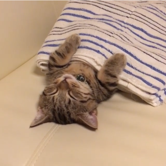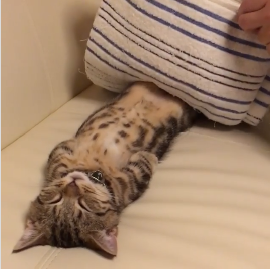 ▼不像其他喵星人會睡的東倒西歪,まんたろー每次要睡覺時,都仰著躺平,還把手腳都併攏,身體直直的就像受過訓的阿兵哥,每次主人看到牠睡成這樣,都覺得很好笑,幫牠拍下來。