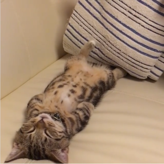 這個睡姿也太有個性了,哈哈,會不會是看主人做瑜伽偷學來的,覺得很舒服,就習慣這樣睡了呢!