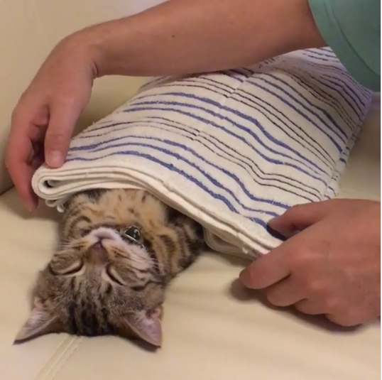 ▼主人給牠蓋完被子,還像照顧小嬰兒一樣把小手手拉出來,看到這個畫面,網友們的心都被融化了。