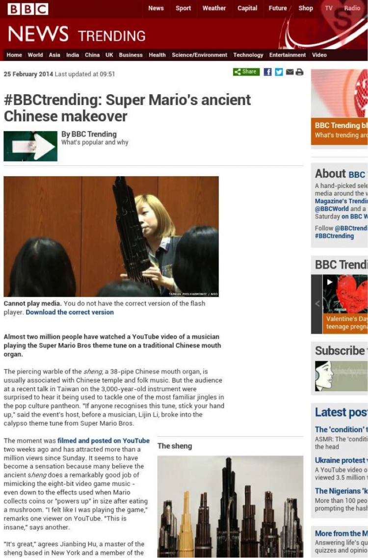 超級瑪莉歐也可以這樣吹!台灣年輕女孩李俐錦,融合古今用三千年的中國古樂器「笙」,演奏出知名遊戲超級瑪利歐的配樂,音樂跟原版如出一轍,甚至登上《每日郵報》、《時代》等網站。