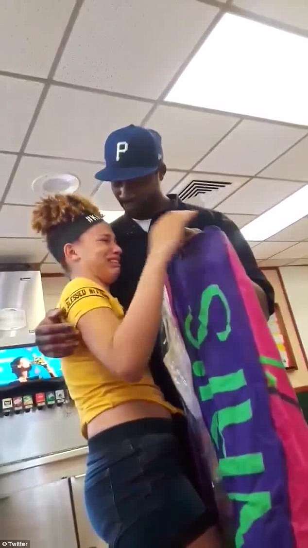 ▼這名父親叫做 Nevaeha Smith,平時他為了養活一家每天要打三份工,十分辛苦。因此當他八年級的女兒對他說想為了高中舞會買一件夢寐以求的裙子時,Nevaeha只好向她表示自己買不起。