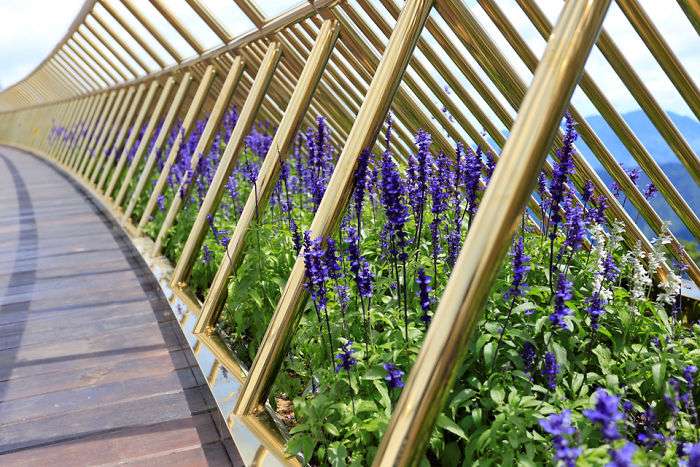 ▼金橋兩邊的小路上,種植了很多紫色的半邊蓮菊花。