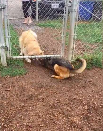 鐵絲網也阻止不了牠們 狗麻吉「狂鑽」就是為了要一起玩