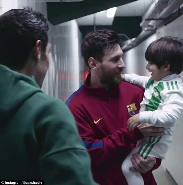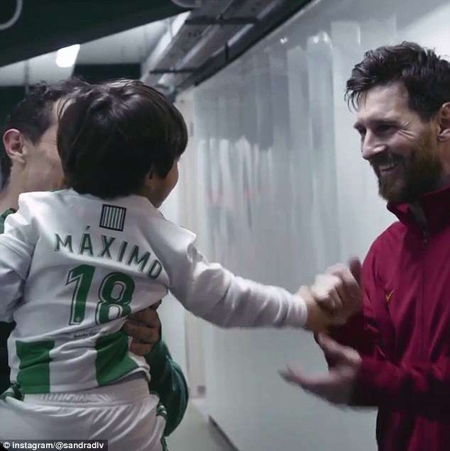 ▼今年1月,梅西所屬的巴塞隆納以5:0擊敗皇家貝提斯。賽後貝提斯中場瓜達多(Andres Guardado)抱著兒子到巴塞隆納的休息室外,見偶像梅西。