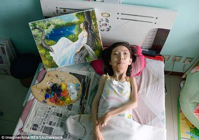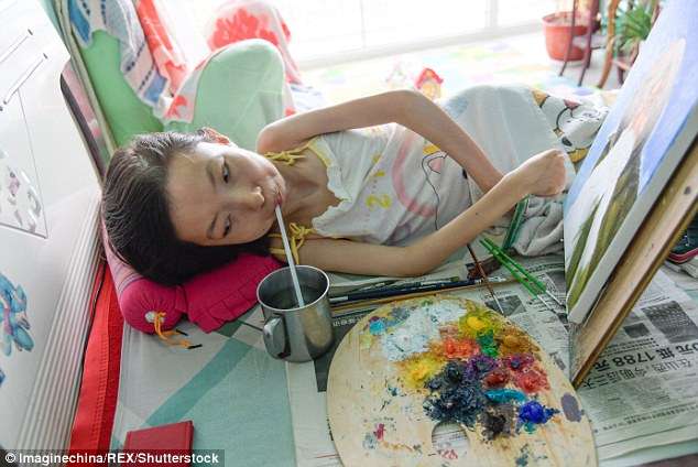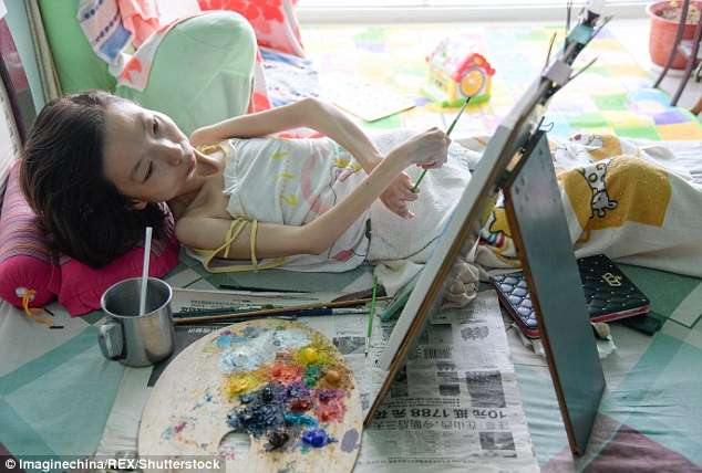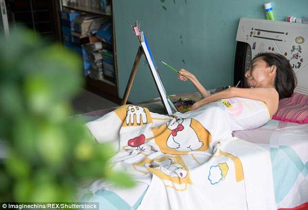 2018年08月03日大陸山西太原有一名叫張俊莉的40歲女子。她患有嚴重的關節炎,從8歲開始就全身癱瘓,只能躺在床上。但張俊莉沒有被生活打倒,她努力學畫,現在成為了一名備受肯定的畫家。