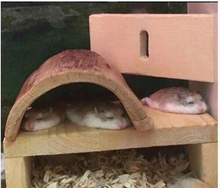 ▼這些睡覺的倉鼠看起來像煎餅