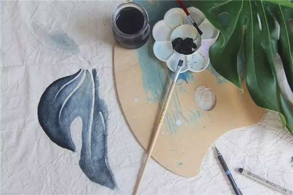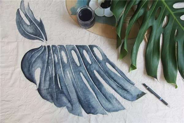 ▼她會用石榴皮、紅茶染色,做一些布藝,還會用靛藍色染料手繪圖案。