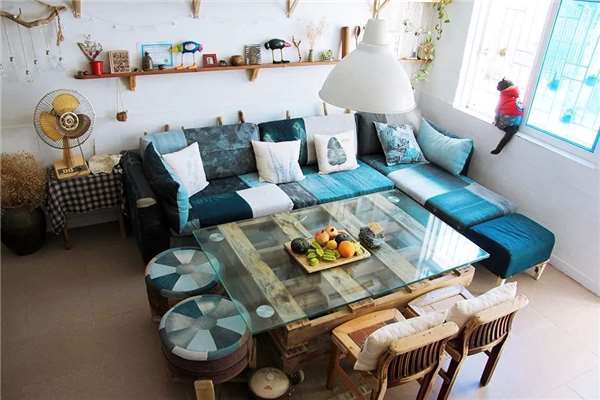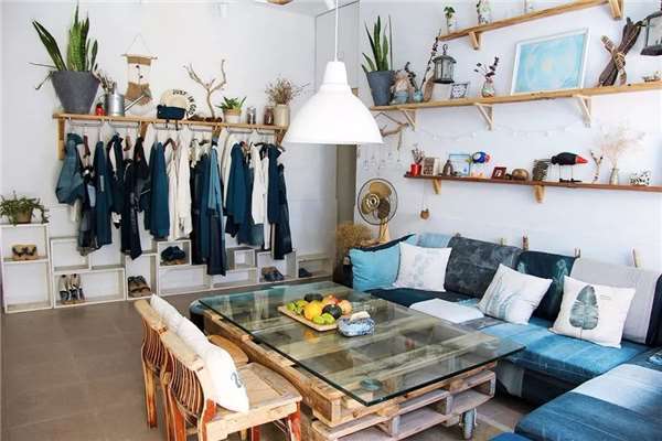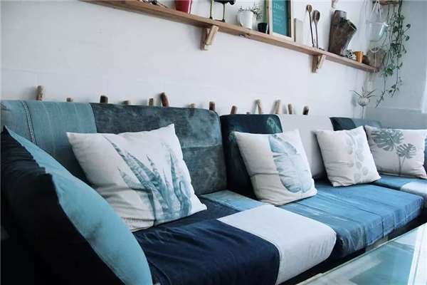 ▼比如客廳的沙發,本來又髒又醜,JING用收集來的舊牛仔褲做了沙發套,馬上就不一樣了。