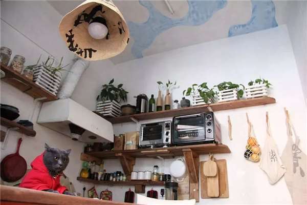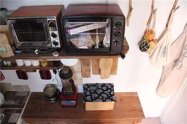 ▼她用木頭做了吧台,還加上了很多置物架,讓整個廚房有了不一樣的感覺。