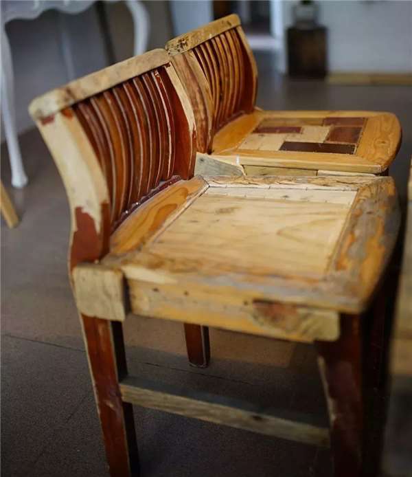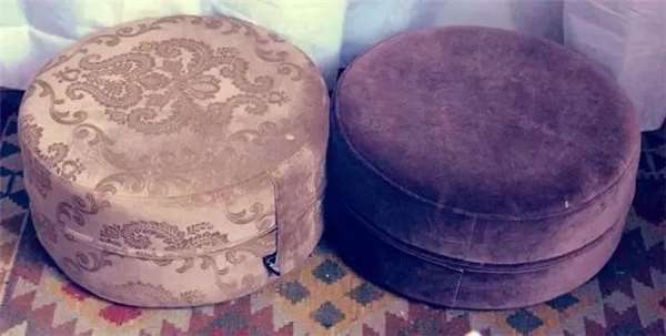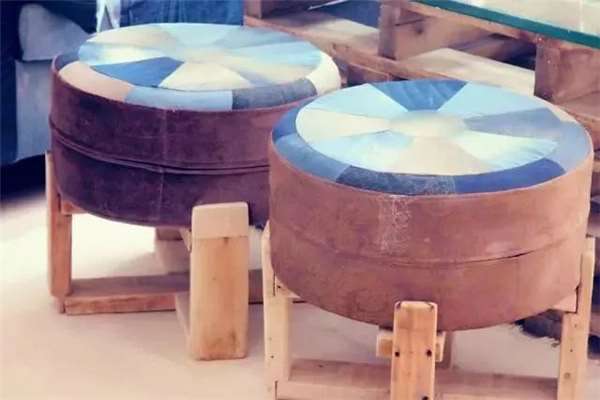 ▼茶几旁的小椅子,原本是破舊的蒲團。她裝上木頭支架,再用牛仔布包起來,就變成了時尚的小板凳。