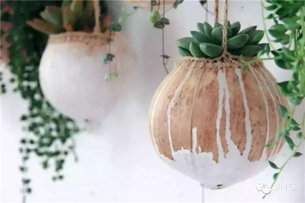 ▼JING以前不會養花,現在卻成了花草高手。吃過的椰子、撿來的瓶子,都是她養花的容器。