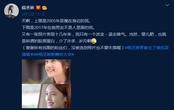 ▼楊丞琳也表示,嬰兒肥也就是所謂的膠原蛋白也少了許多,大家看看這兩張照片,是不是感覺差別不大呢?