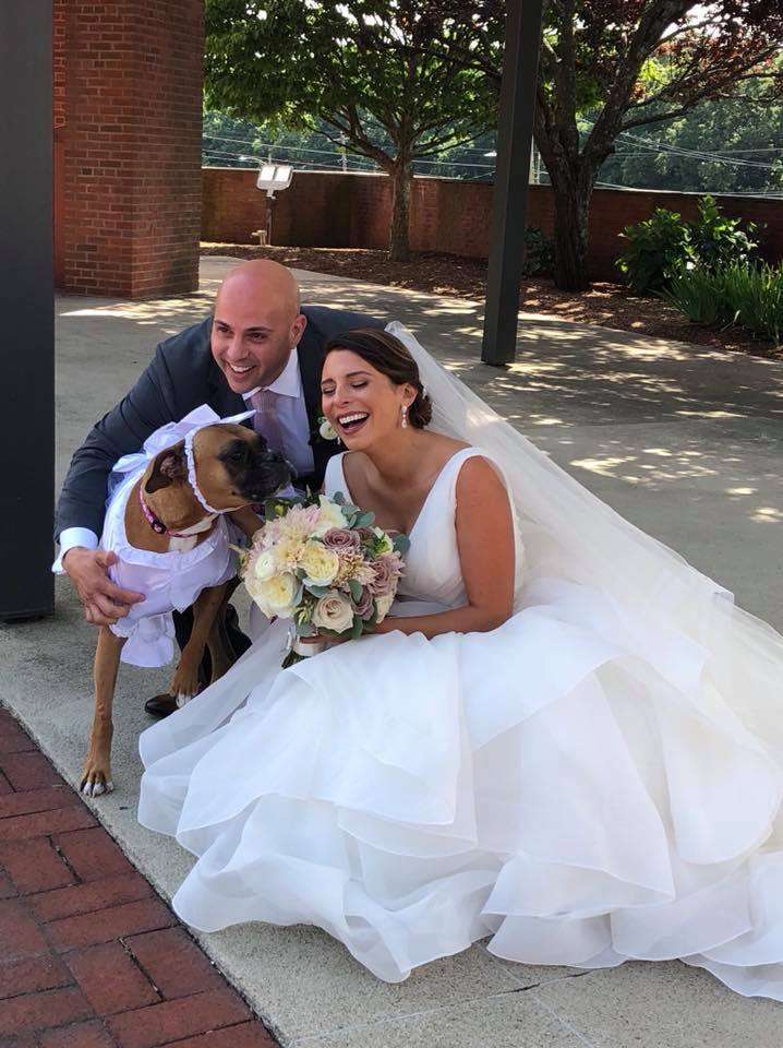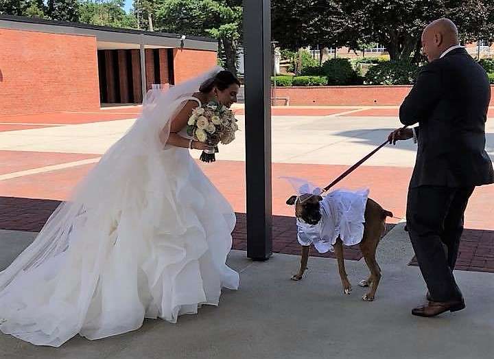 2018年08月18日主人的婚禮,毛孩怎麼能缺席!美國羅德島州女子Danielle Brien迎來了期待已久的美好日子。穿著美麗婚紗的她並不知道,新郎Christopher Lucca準備了一個大驚喜,那就是讓她的愛犬Gia也出席婚禮。