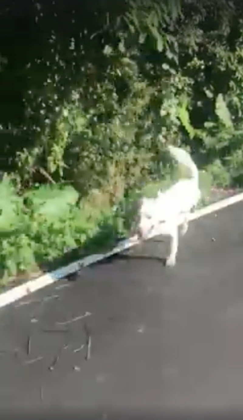 ▼清醒後的白帥帥不習慣失去腳,走路還常常跌倒,頭撞到地板。不過牠還是漸漸學會站穩身體,甚至開始跑步,而白帥帥最喜歡的就是傍晚的散步啦!