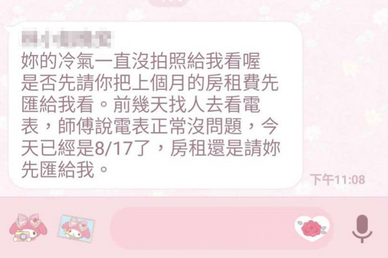 ▼詢問了房東後,收到的回答竟然是「電表正常沒問題」,讓她很無助。