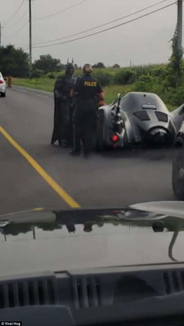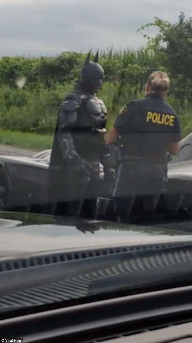 2018年08月23日DC超級英雄「蝙蝠俠」一向來無影去無蹤,最近人們卻在加拿大看到了他的身影。在安大略省賓頓市一條繁忙的公路上,一台「蝙蝠車」停在路邊,警方走過去後,身穿蝙蝠俠服裝的駕駛從車上跳了下來。
