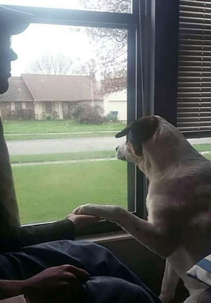 ▼這隻狗狗能感受到主人的情緒,主人焦慮、悲傷時,牠就伸出爪爪握住主人的手。