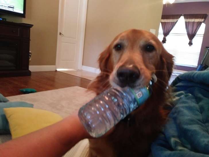 ▼Duncan是一隻糖尿病警報犬,牠感覺主人的血糖偏低,就拿給他一罐果汁。