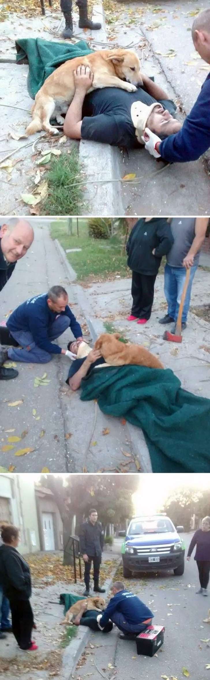 ▼主人修剪樹枝的時候不小心摔了下去,醫護人員趕到現場時,牠的狗狗陪在他身邊。