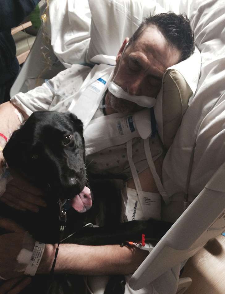 ▼他住院1週了,今天是他的生日,他唯一的願望就是見見狗狗。