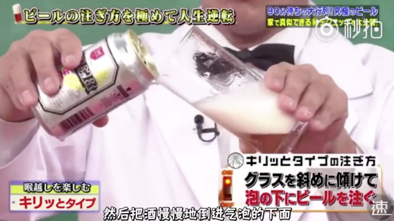 倒啤酒竟然有分「暢快飲酒類型」和「溫和飲酒類型」?日本一位「年收2400萬日圓」的啤酒師傅重富桑受邀上節目,為觀眾示範「倒啤酒讓味道好喝10倍」的技巧!