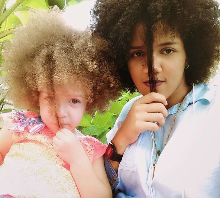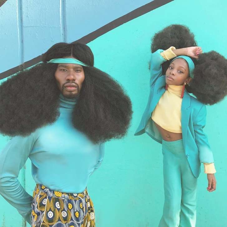 ▼模特Benny Harlem和他的女兒,他們都有很厲害的頭髮。