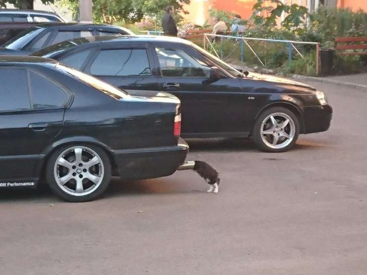 ▼不要開車,車後有貓!