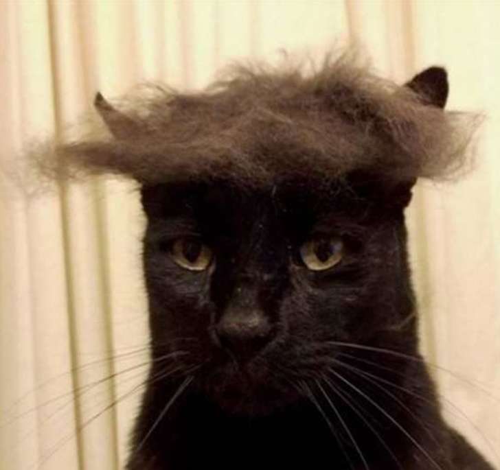 ▼主人給貓咪梳毛後,用毛給牠做造型。