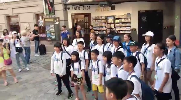 ▼第一次出國,加上不同的風土,讓這群孩子們一開始表現失常,失去自信。校長徐榮春便規劃了維也納的「街頭快閃演唱」,孩子們高唱泰雅族的「歡樂歌」,即使肢體有些僵硬,但孩子在街頭眾人的叫好中找回自信。