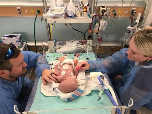 ▼醫生告訴Molli寶寶的生存機率只有2%,就算真的活下來了也會有殘疾。雖然如此,Molli和丈夫Robert卻從來沒有打算要放棄救自己的寶寶。Robert著急地打給16家不同的醫院,希望能找到有願意接收情況嚴重的早產兒的醫院。