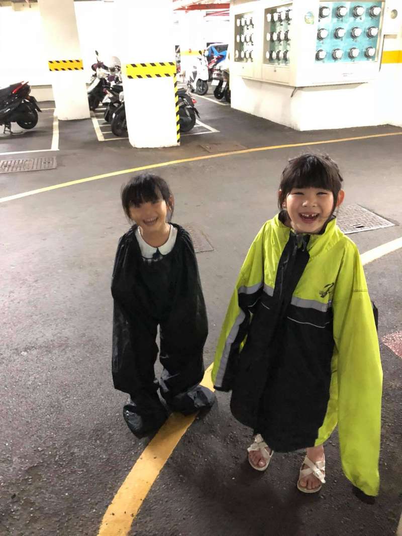 ▼原來他把身上的兩件式雨衣分開來,竟然就變成了兩件雨衣。5歲和7歲的女兒分別穿上上下身,畫面看起來超激萌。尤其是穿下半身的妹妹,更是讓網友們笑到不要不要的。
