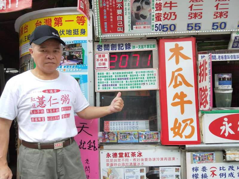 ▼老闆對於苦行憎式的上班,表示非常樂在其中。他最自豪的是能夠證明自己能夠全年無休,也證明了年齡不是問題。