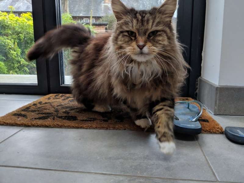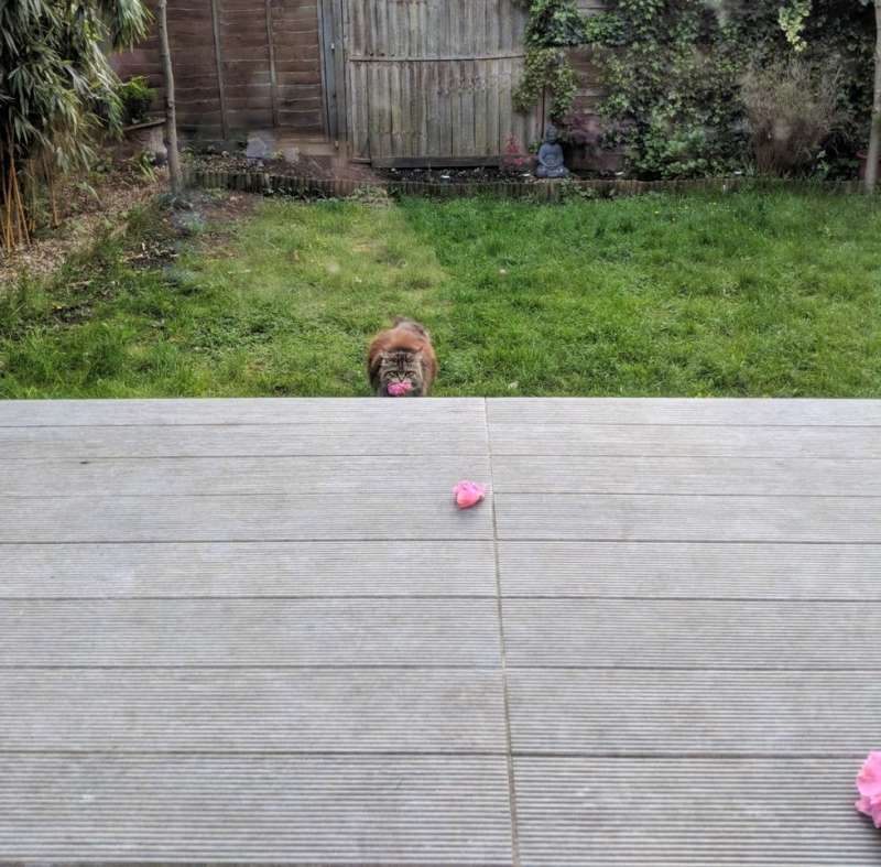 跟鄰居帥貓混熟後 牠天天「送粉紅浪漫禮物」來串門