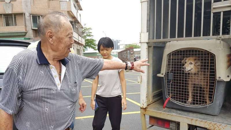 ▼他非常感謝動保處與照生會」,接著轉頭對著妞妞喊:「再見,要找到一個對你好的家。」