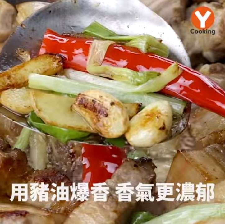▼而滷肉的話,將肉塊煸出油後用豬油來爆香配料,吃起來香氣就會更加濃郁!