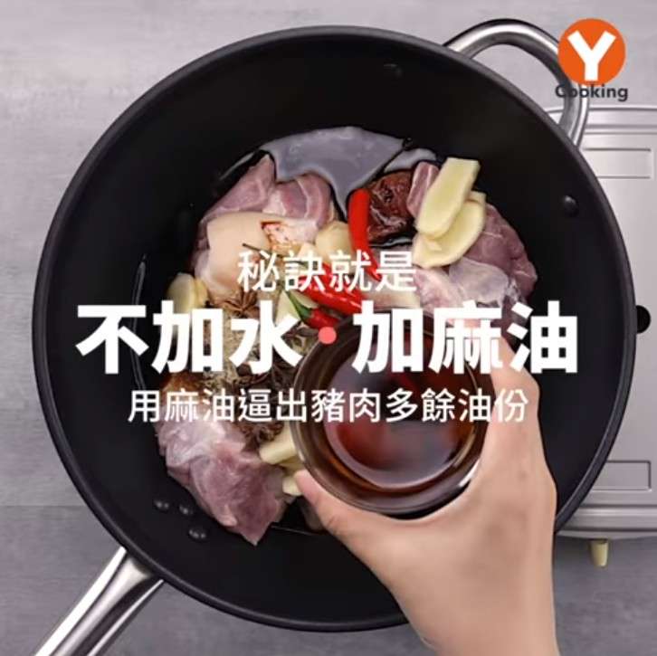 ▼而紅燒爌肉的做法,原來是不要加水而改加麻油!