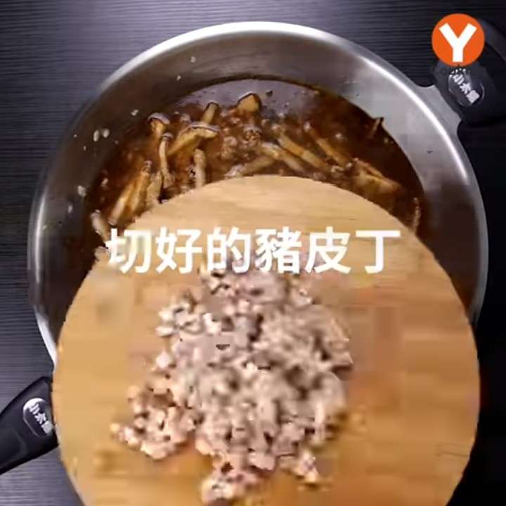 ▼首先是煮肉燥的秘訣,原來肉燥要好吃,就要加入切成丁的豬皮!