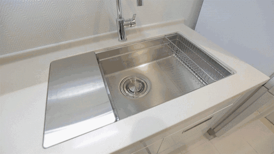 ▼廚房中的可移動水槽、下拉式籃子、頂櫃、灶台,每一處都超實用。