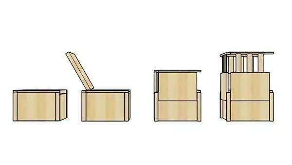 ▼12把椅子通過組合變化出嬰兒床、沙發、床鋪。