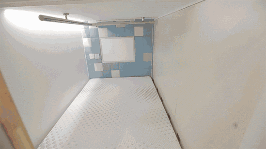 ▼膠囊房裡的窗戶可以模擬12小時的日光變化,便面壓抑。