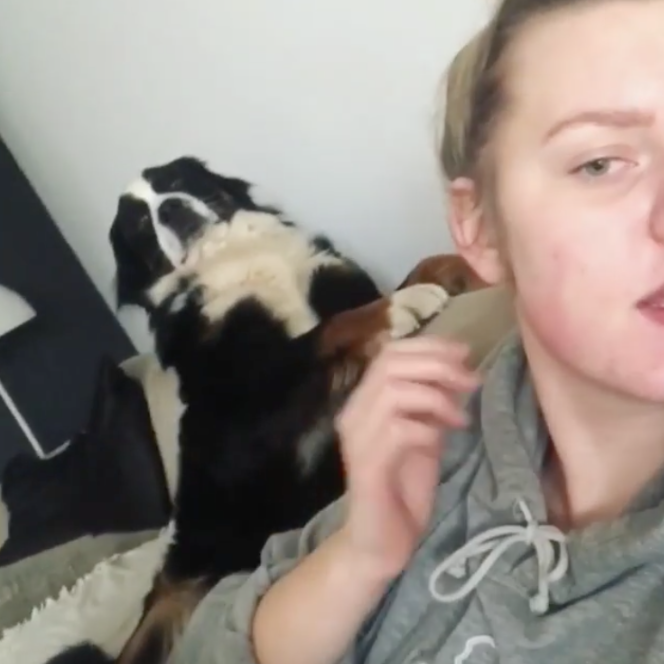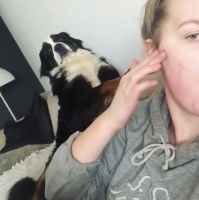 不小心打到主人的臉頰紅紅的 毛孩嚇呆摀臉道歉:原諒我好嗎…