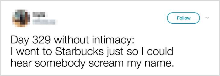 ▼「329天沒有任何親密關係,我不得不去星巴克,至少這樣有人會喊我的名字。」