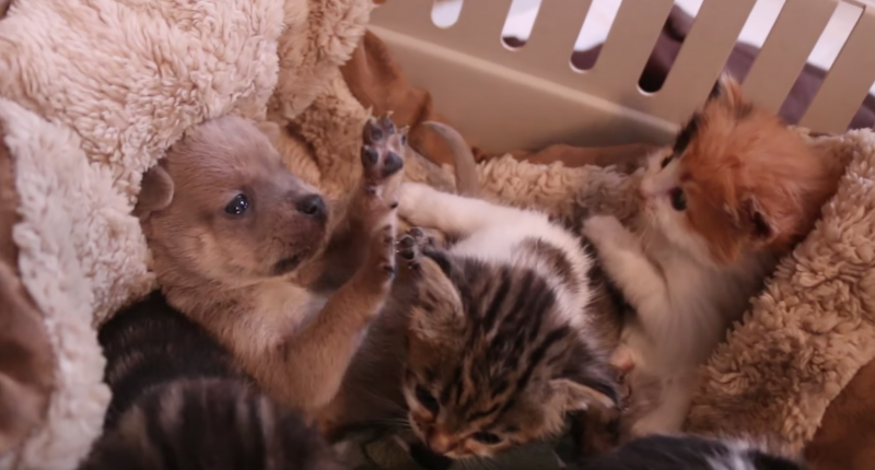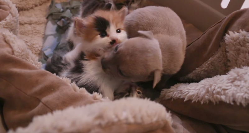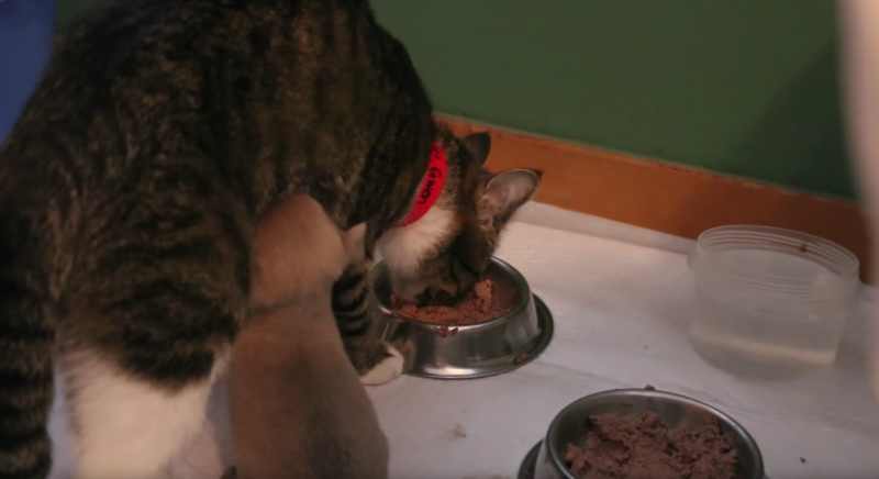 2018年09月08日幼犬鮑比才剛出生5天,媽媽就被車撞到永遠離開這個世界。美國密西根州動物收容所接收鮑比後,正煩惱無法用固體飼料餵食的問題。想了一想之後,他們決定把鮑比放到剛成為母親的貓咪Gwen身邊⋯