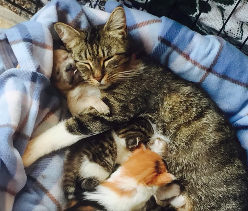 幼犬剛出生5天就變孤兒 貓媽媽霸氣收養:吸我的ㄋㄋ吧