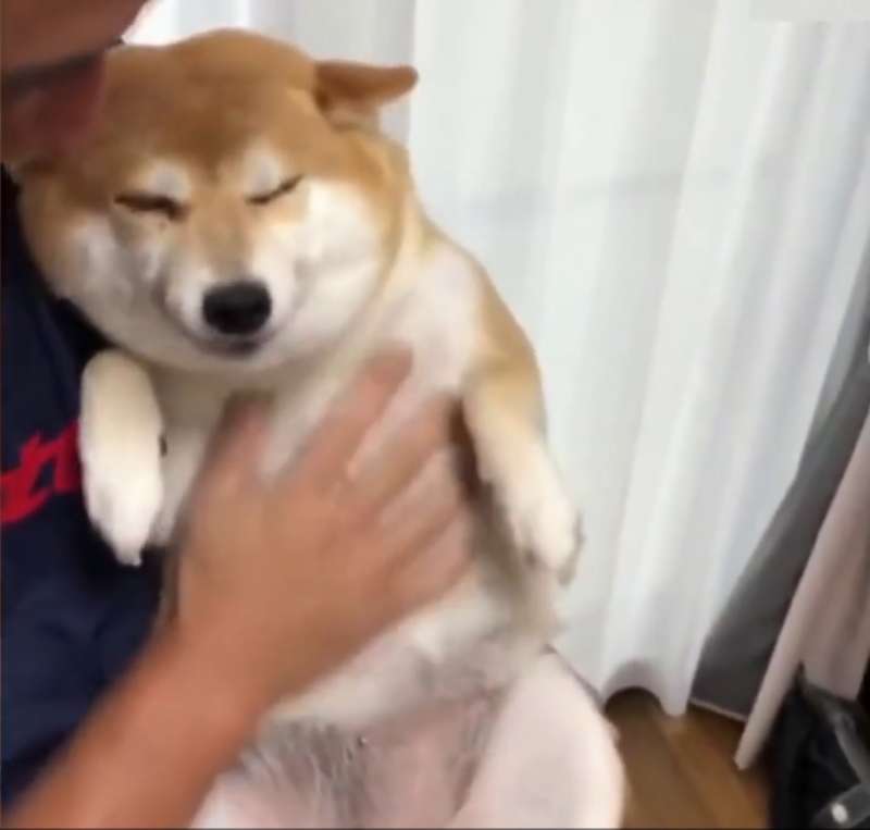 ▼「最喜歡拔拔咕嘰咕嘰~摸摸我的肚子了,好舒服~充滿安全感。」看著柴柴一臉心滿意足的模樣,彷彿主人的懷抱就是牠的全世界。