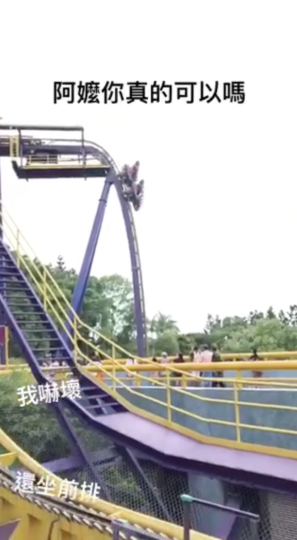 2018年09月15日網紅郭郁承坐劍湖山G5前捕獲霸氣阿嬤!他們一行人在排隊已經嚇到發抖,卻傻眼看著一位霸氣阿嬤面無表情地坐在G5座椅上,態度狂到讓人無法忽視!要知道「飛天潛艇G5」非常恐怖,許多年輕人都不敢玩啊!